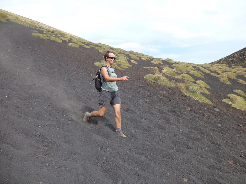 Unusually in my experience of climbing hills the coming down was more fun than going up, we walked, ran and slid the whole way down over the ash covered slopes by the end we where filthy covered in volcanic dust and with boots filled with volcanic stones.