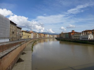 The area where the tower is situated was of course filled with coach parties, all having their photos taken in a pose where it looks as though you are holding the tower up, but as soon as you walked a few metres they all disappeared and it was a normal Italian town, complete with an extensive antiques and crafts market. There is also a historic centre with alleyways and squares and through all this runs a wide river.