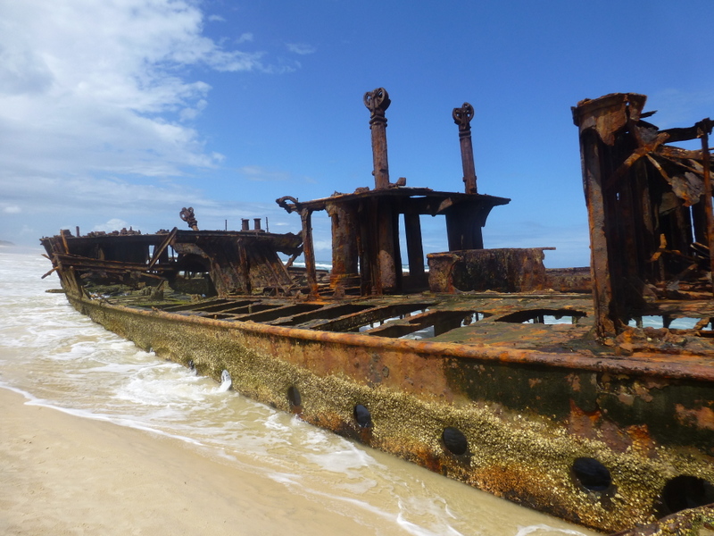 We used this as an access point to Fraser Island apparently the largest sand island in the world. It took two attempts to get there as the first day the ferry which takes vehicles (4 X 4 only) ran aground. I did joke with the bus driver that it looked swimmable at under 1 km and he told the tale of how they had tried to introduce cattle farming on the island by swimming the cattle across at low tide. Only 20% made it, the sharks got the rest!